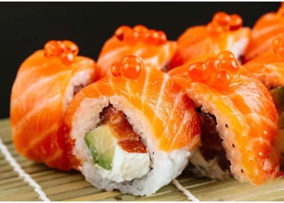 Рис, нори, сливочный сыр, лосось, икра лососевая, авокадо