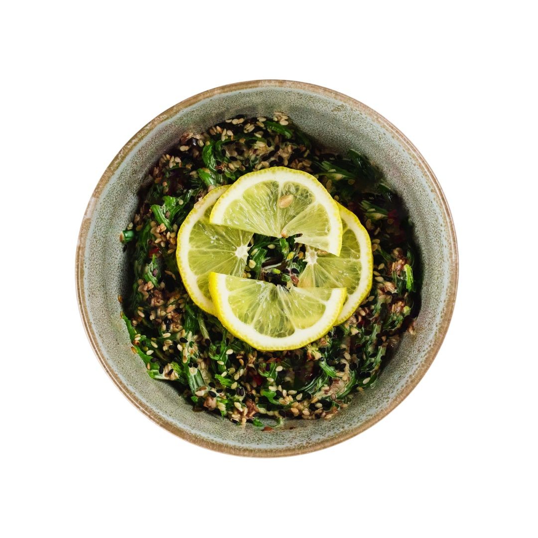 Чука салат, соус ореховый, лайм, кунжутная смесь