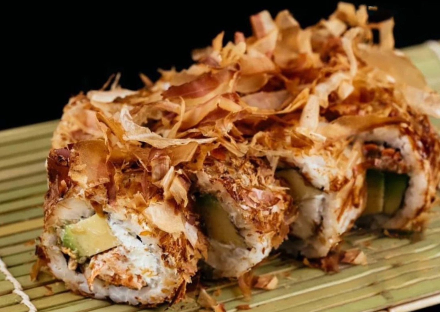Рис, нори, лосось, сливочный сыр, авокадо, стружка тунца
