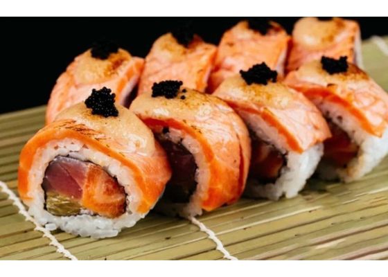 Ролл с обожженным лососем и апельсином