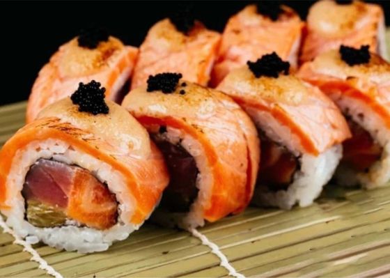 Ролл с обожженным лососем и апельсином