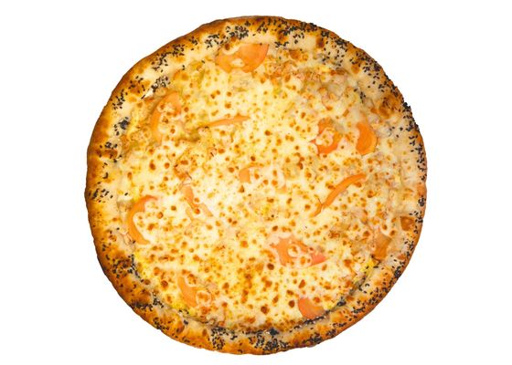 Томатный соус, цыпленок запеченный, шампиньоны, сладкий перец, томаты, перец халапеньо, красный лук, смесь итальянских трав