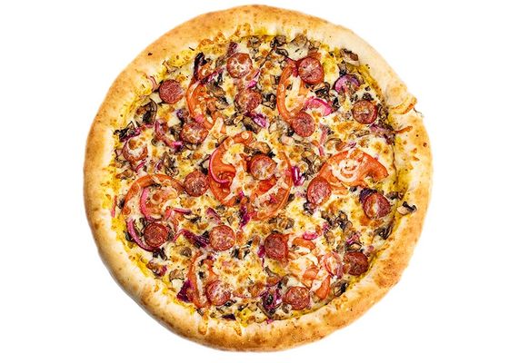 Томатный соус, сыр моцарелла, пепперони, шампиньоны, маслины, смесь итальянских трав