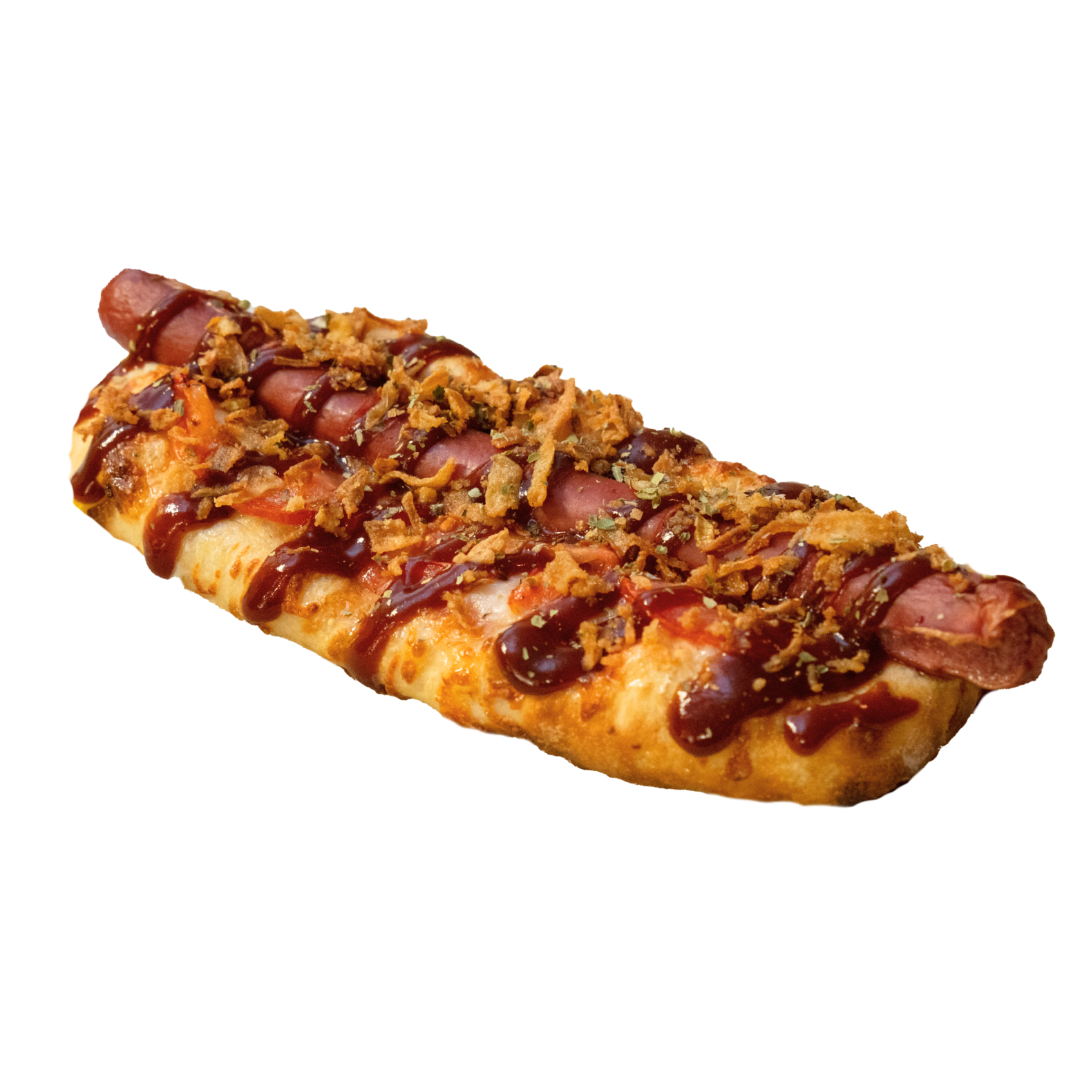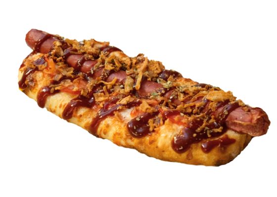 Томатный соус, сыр моцарелла, охотничья колбаска, томаты, барбекю соус, криспи лук, смесь итальянских трав