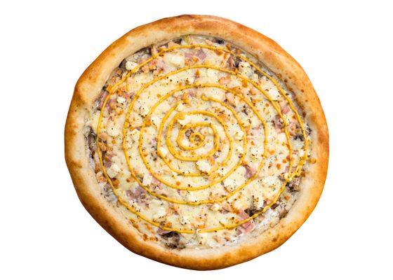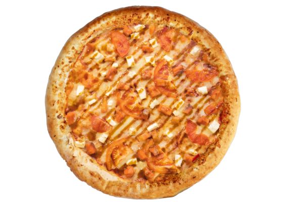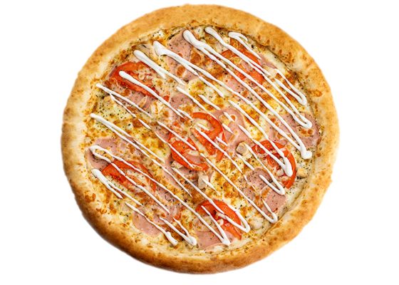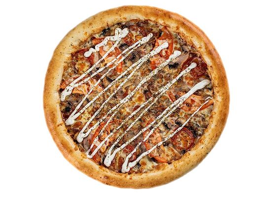 Американский соус ранч, сыр моцарелла, цыпленок запеченный, ветчина куриная, сыр фета, шампиньоны, горчичный соус, смесь итальянских трав
