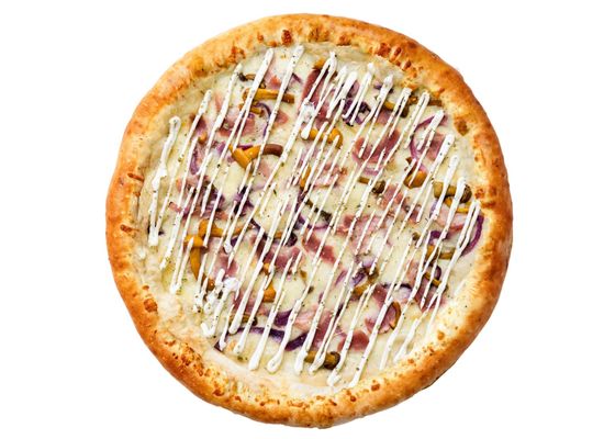 Белый соус, грудинка, сыр моцарелла, опята маринованные, красный лук, грибной соус, смесь итальянских трав