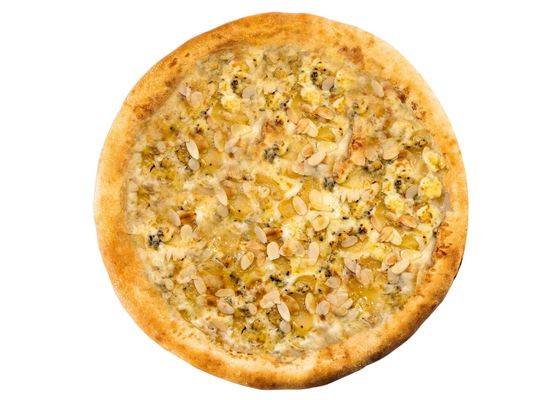 Белый соус, сыр моцарелла, сыр дорблю, груша, миндаль, мед