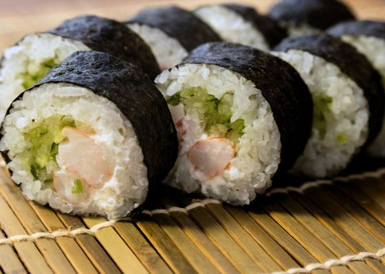 Рис, нори, копченый угорь, соус унаги, кунжутная смесь