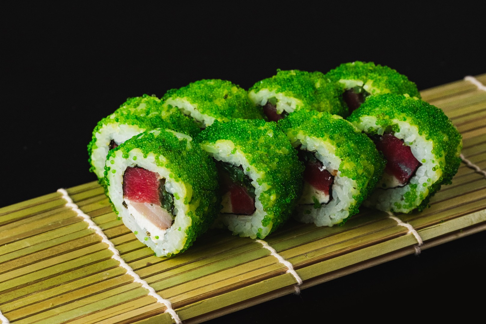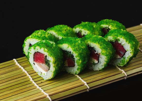 Ролл с тобико, тунцом и морским окунем