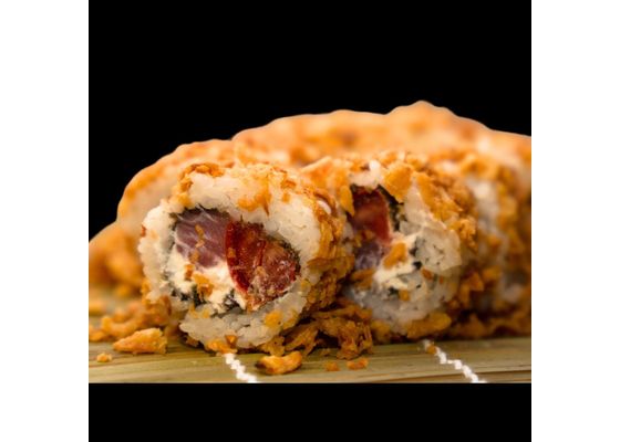 Рис, нори, тунец, томаты, сливочный сыр, криспи лук