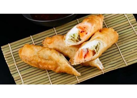 Рисовая бумага, лосось, сливочный сыр, лук-порей