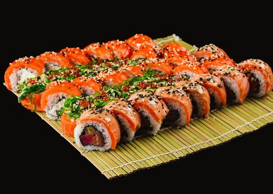 Ролл тори; ролл Калифорния; ролл с обожженным лососем и апельсином; ролл с тобико, тунцом и апельсином; ролл с тобико, тунцом и морским окунем; ролл Таити (горячий); спринг-ролл с лососем и луком-порей; ролл Филадельфия лайт; ролл Мадагаскар; ролл Филадельфия кунжут; ролл с обожженным морским окунем и кисло-сладким соусом чили; ролл с обожженным тунцом и луком-порей (84 штуки)
