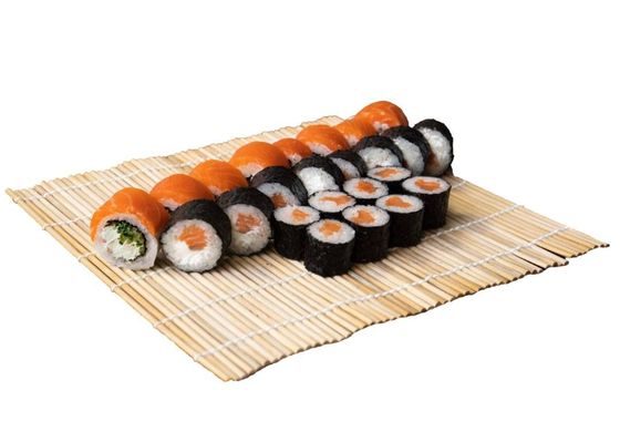 Ролл тори; ролл Калифорния; ролл с обожженным лососем и апельсином; ролл с тобико, тунцом и апельсином; ролл с тобико, тунцом и морским окунем; ролл Таити (горячий); спринг-ролл с лососем и луком-порей; ролл Филадельфия лайт; ролл Мадагаскар; ролл Филадельфия кунжут; ролл с обожженным морским окунем и кисло-сладким соусом чили; ролл с обожженным тунцом и луком-порей (84 штуки)