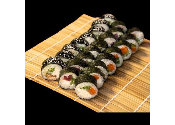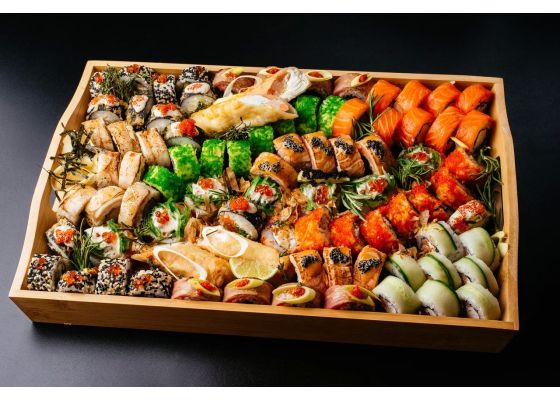 Ролл тори; ролл Калифорния; ролл с обожженным лососем и апельсином; ролл с тобико, тунцом и апельсином; ролл с тобико, тунцом и морским окунем; ролл Таити (горячий); спринг-ролл с лососем и луком-порей; ролл Филадельфия лайт; ролл Мадагаскар; ролл Филадельфия кунжут; ролл с обожженным морским окунем и кисло-сладким соусом чили; ролл с обожженным тунцом и луком-порей (84 штуки)