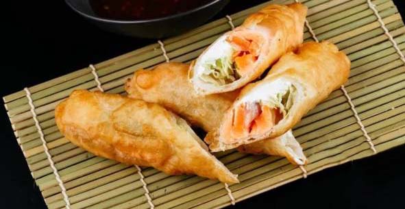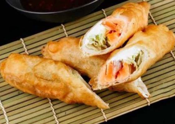 Рисовая бумага, лосось, сливочный сыр, лук-порей