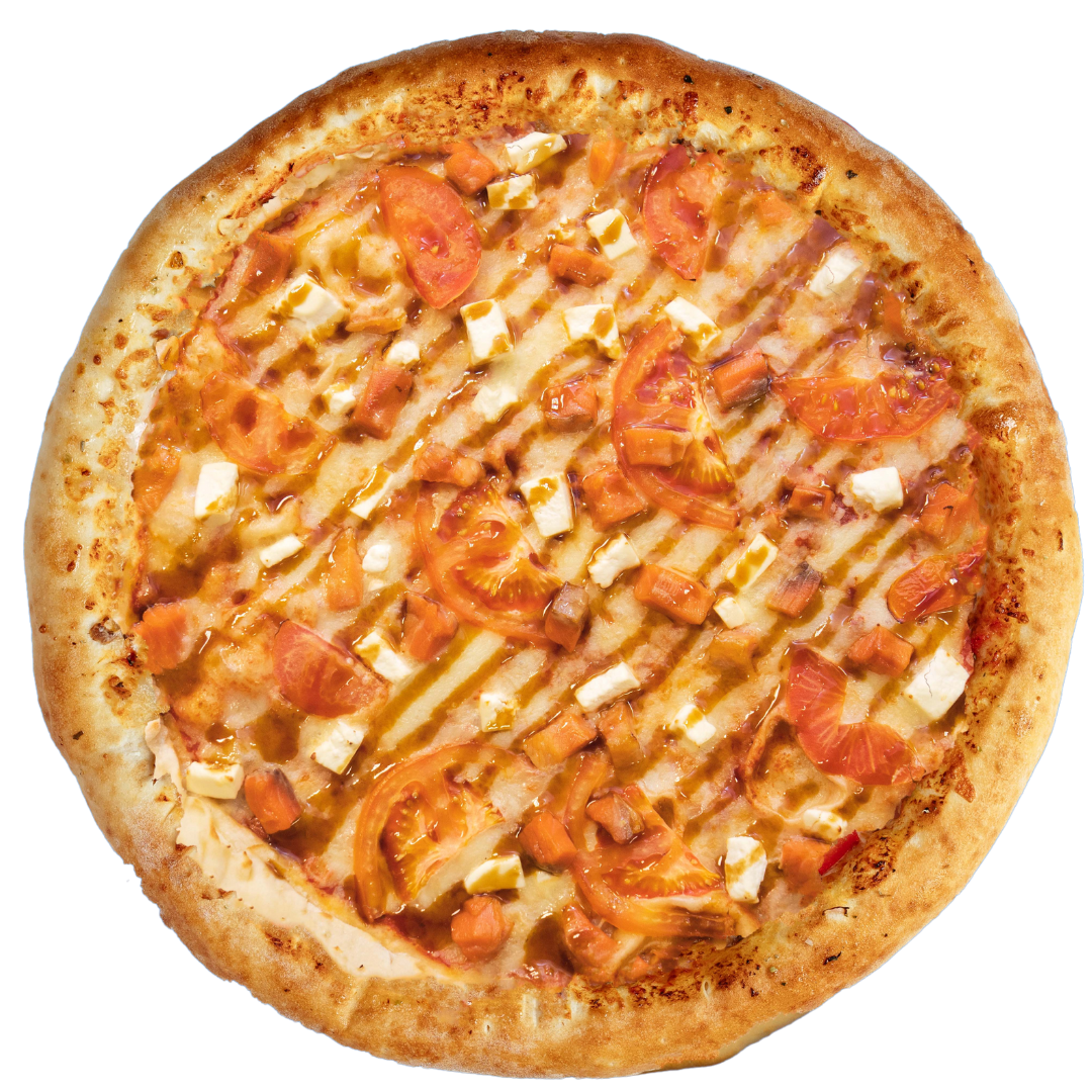 Томатный соус, сыр моцарелла, лосось слабосоленый, томаты, сыр фета, соус терияки, смесь итальянских трав