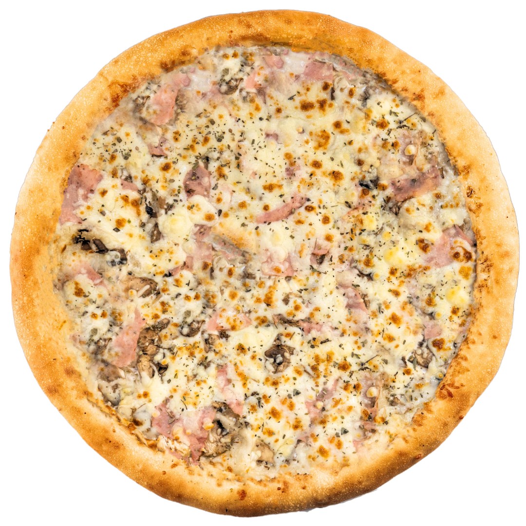Грибной соус, сыр моцарелла, ветчина, шампиньоны, смесь итальянских трав